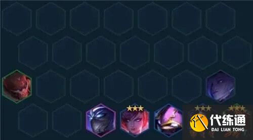 这个阵容的站位后场单挂一个派克,可以打出比较好的进场效果,伊芙琳挂在后排,给队友吃神盾使的羁绊,其他的夜影、刺客、忍者就在后场一字排开,让阿卡丽的团队装发挥。