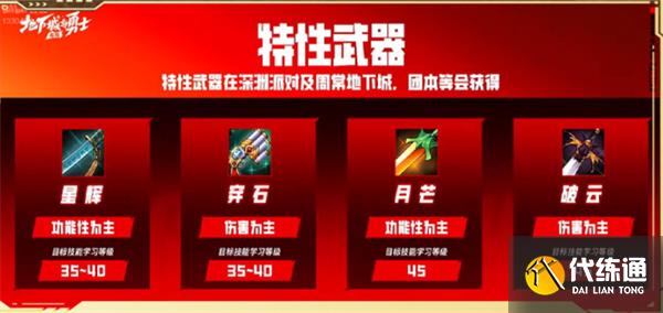 新增特性武器,分为4种类型,通过深渊、周常、团本获取