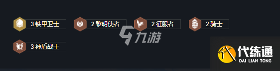 现在阵容输出问题解决了,而S5.5对阵容坦度提升最大的羁绊莫过于铁甲卫士了,铁甲卫士能为友军提供额外的护甲,并且铁甲卫士英雄享泰坦、武器、芮尔都是非常肉的。随后因为锐雯的羁绊是征服者和黎明使者,我们再为主C锐雯凑出2黎明2征服者的羁绊,铁甲锐雯阵容成型。