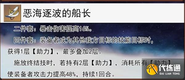 4件效果:成为队友技能目标时获得「助力」,最多叠加2层。施放终结技时消耗助力,获得48%攻击力,持续1回合。