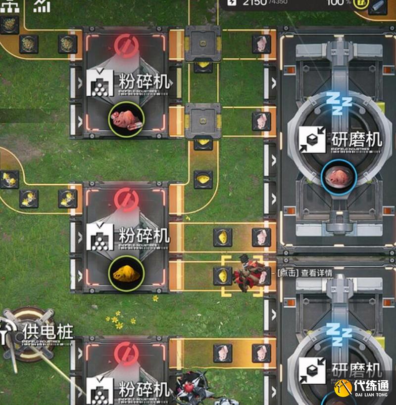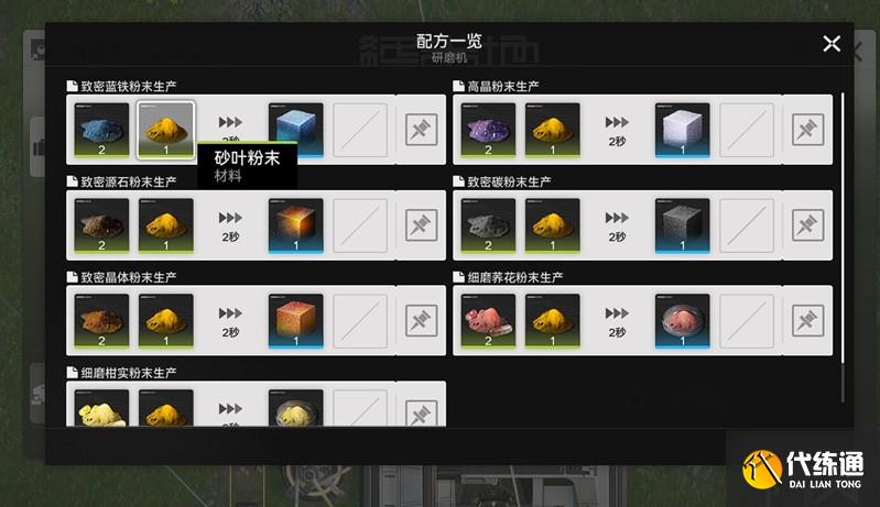 砂叶粉末是砂叶的加工产物,在研磨机中1个砂叶可以加工成3个砂叶粉末。建议使用3台研磨机共用1条输入带的方式提高生产效率,但要注意传送带的负载均衡。部分干员可以提升研磨机10%-15%的工作效率。