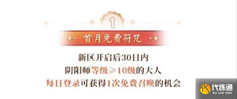 新区开启后30日内阴阳师等级>10级的大人每日登录可获得1次免费召唤的机会。