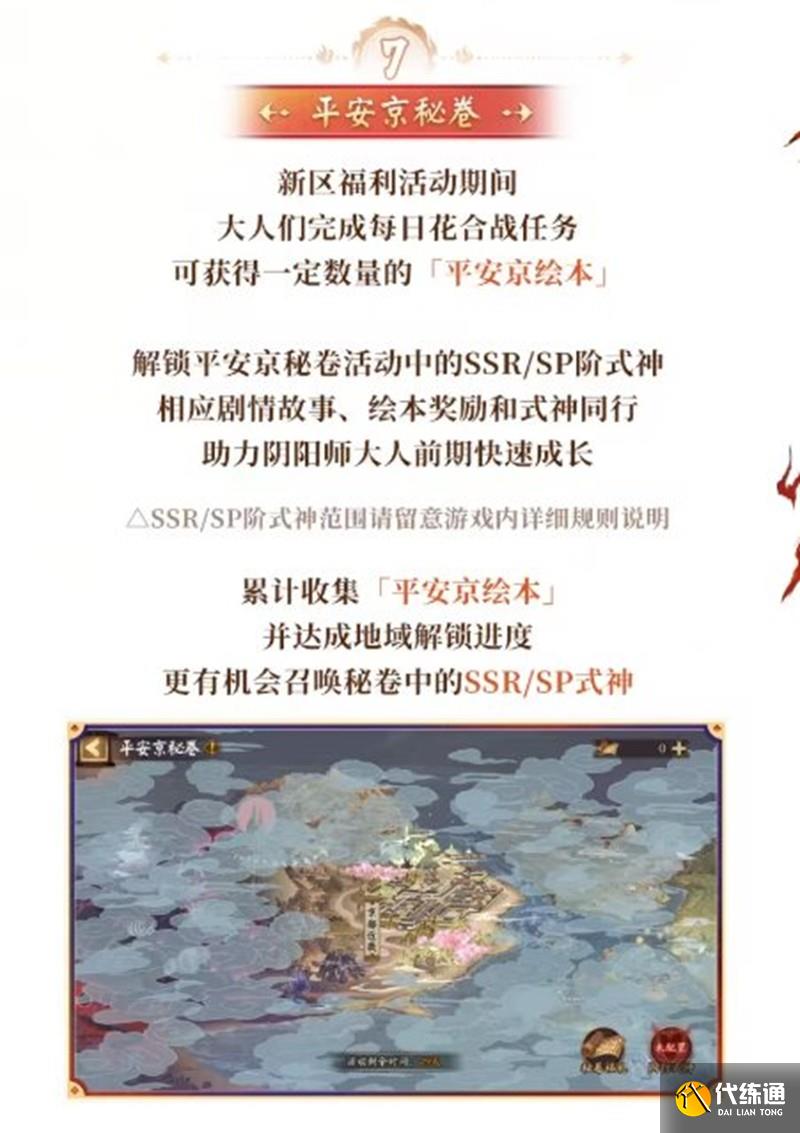 新区福利活动期间大人们完成每日花合战任务可获得一定数量的平安京绘本、解锁平安京秘卷活动中的SSR/SP阶式神相应剧情故事、绘本奖励和式神同行助力阴阳师大人前期快速成长。