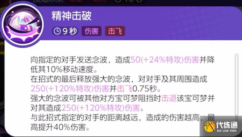 精神击破是超级超梦Y的核心输出技能,先造成减速效果再释放强力念力波,不仅能打出高额伤害还能击飞范围内的敌人。这个技能在团战中往往能起到关键作用。