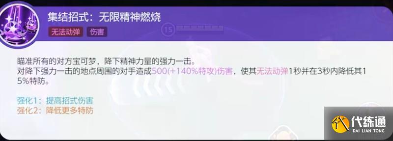 作为终极技能,无限精神燃烧能锁定全场敌人造成巨额特攻伤害并附带1秒硬控。后续3秒内敌人特防下降的效果,让团队可以轻松完成收割。