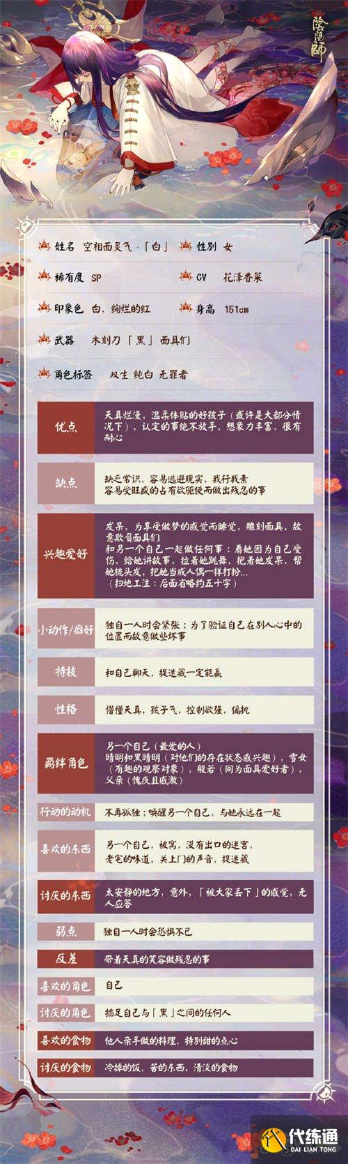 在无限的回廊上摸黑前行,小心翼翼地躲避四散的面具,扫地工搜集档案情报的过程实属不易〒▽〒……终于找到出口的纸匆匆赶来为大人们奉上这份专属档案,帮助大人们在捉迷藏中顺利找到空相面灵气!新式神即将降临,不知大人们为她准备了什么昵称呢?