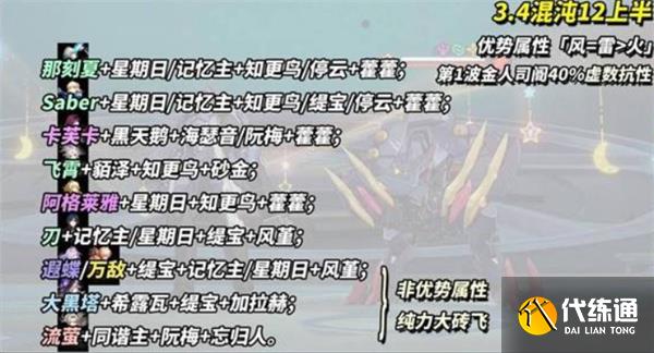 诡奕砂金具备40%虚数抗性,尽量避用虚数主C。