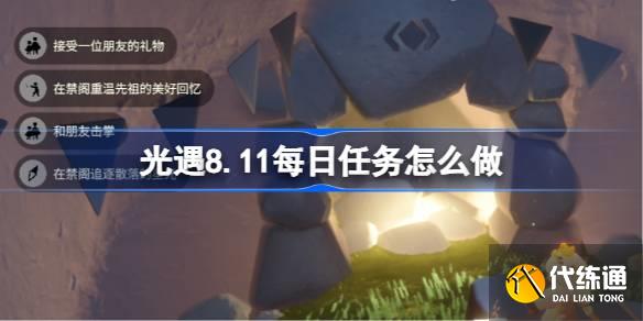 光遇今天的每日任务刷新在禁阁,大家知道今天8月11日的具体任务信息和做法流程吗?下面为大家带来光遇8.11每日任务怎么做的具体内容和方法,感兴趣的玩家们千万不要错过哦!
