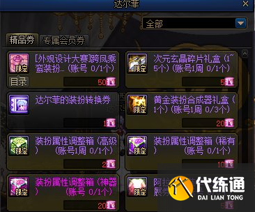 1、这个精品券可以在“阿拉德时装季”中,通过上架装扮的人气值转化获得;
