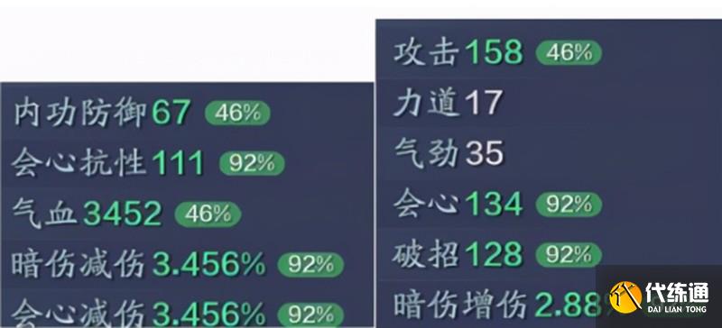 3多紫将力道气劲加成转为特殊属性加成;4金1紫方案使基础攻击翻倍,并额外获得60%破招加成。