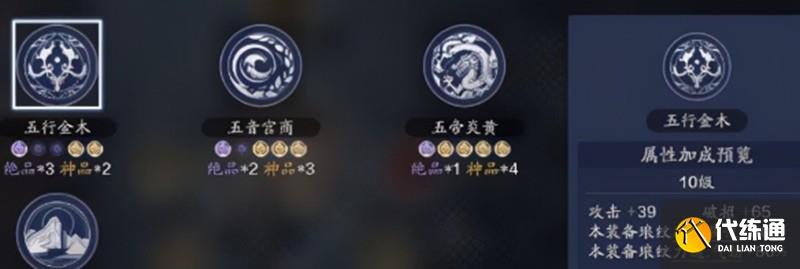 不同数量的金色琅纹会带来不同的加成效果,从全紫到4金1紫共有五种搭配方案。