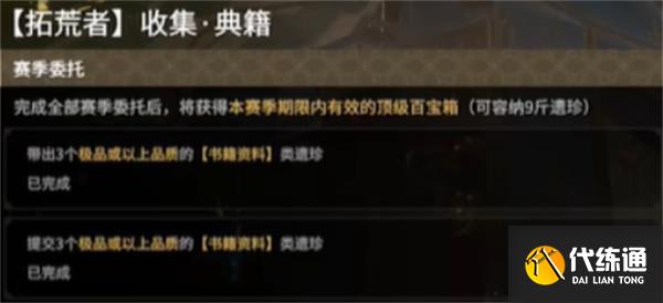 顶级百宝箱需要通过完成当季任务获取,赛季更新后需重新完成。