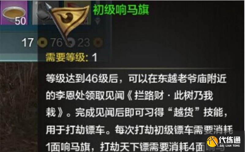 在这里小编建议玩家们建议组队进行押镖任务,队友的功力高低并不重要,关键是要能配合默契。所有队员都需要准备好镖旗,其中一名队员还需准备响马旗。队长必须达到镖头等级并掌握镖师强运技能,这样才能确保押镖过程更加顺利。