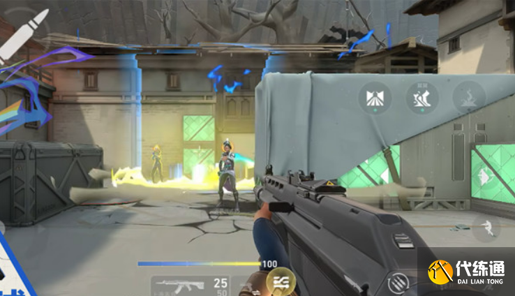 霓虹释放两道静电墙于前方,能阻挡敌方视野,并对穿越者造成伤害与减速