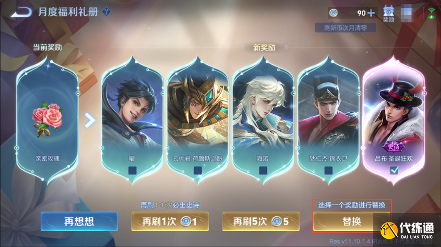 刷新到喜欢的奖励,可选择替换当前奖励。