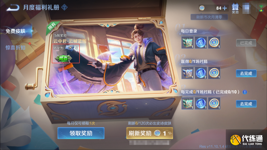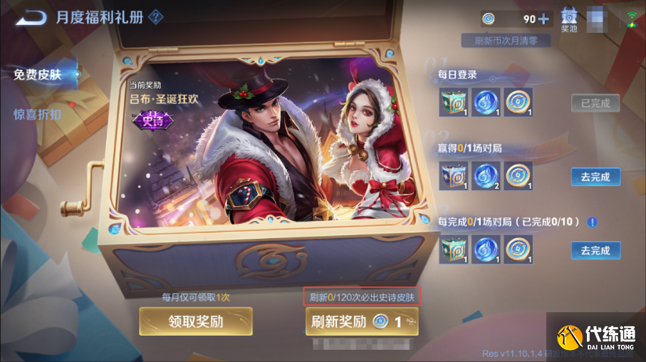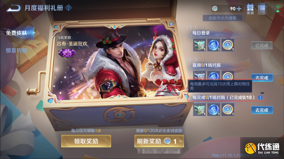 完成礼册每日/每周的活跃任务,获得免费刷新币;