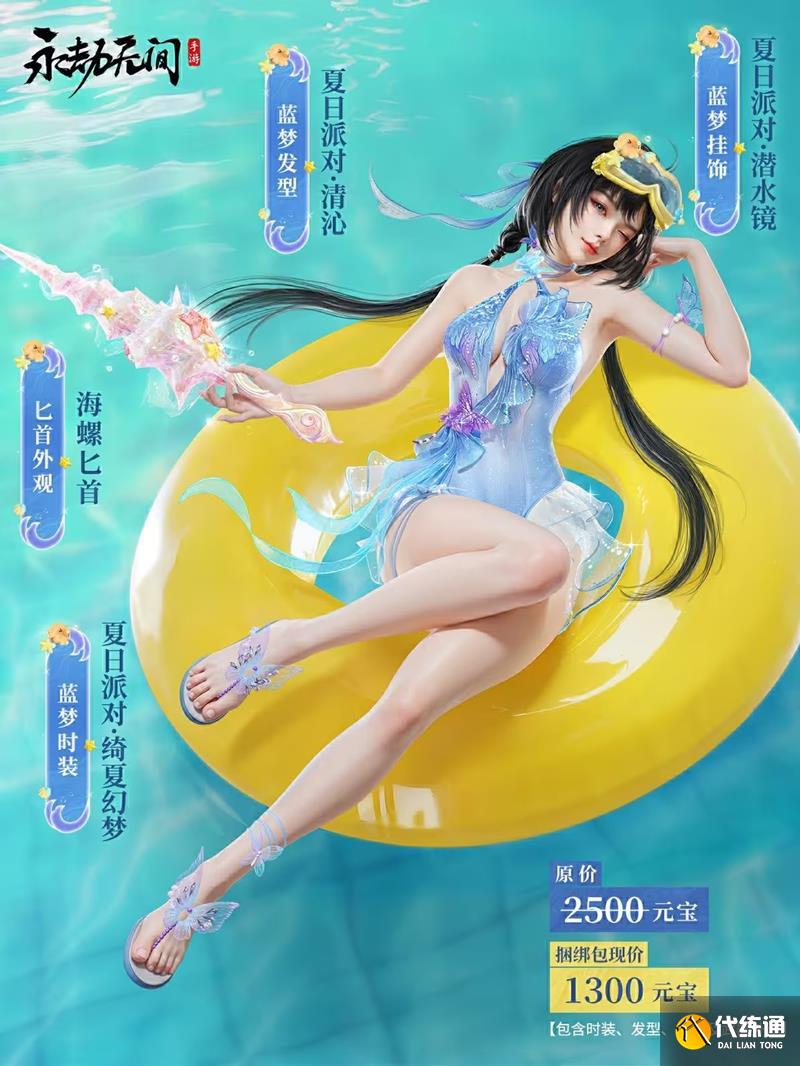 1、新增蓝梦极品奥义外观【夏日派对·花戏涟漪】,原价1800元宝,折扣价1175元宝