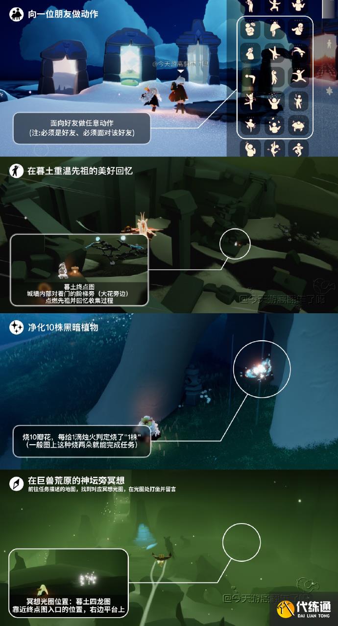 光遇今天的每日任务刷新在暮土,大家知道今天9月4日的具体任务信息和做法流程吗?下面为大家带来光遇9.4每日任务怎么做的具体内容和方法,感兴趣的玩家们千万不要错过哦!
