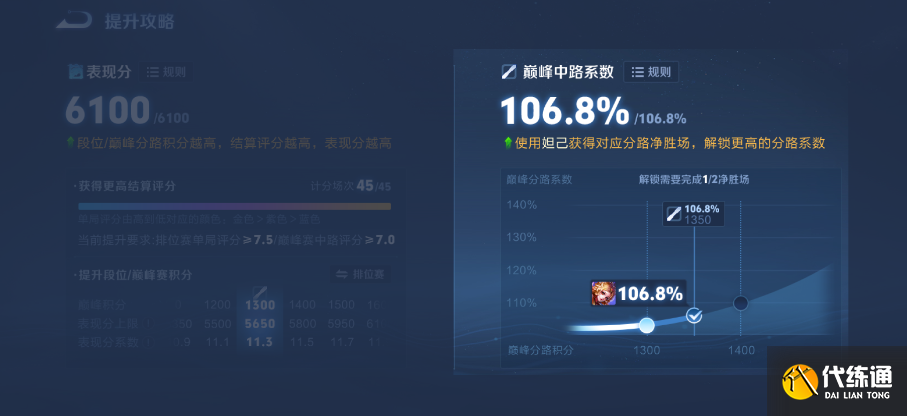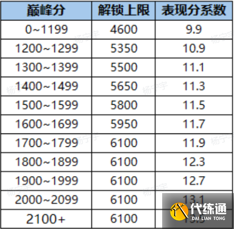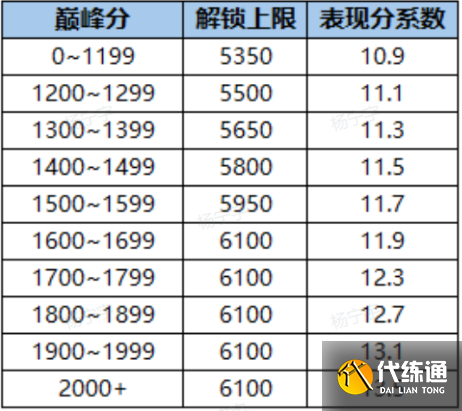 我们收到玩家反馈,进一步优化了巅峰分能够解锁的表现分上限和表现分系数,以提升巅峰赛的对局收益,减少玩家肝度调整前: