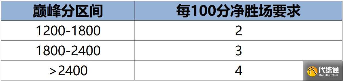 各巅峰区间要求的净胜场数: