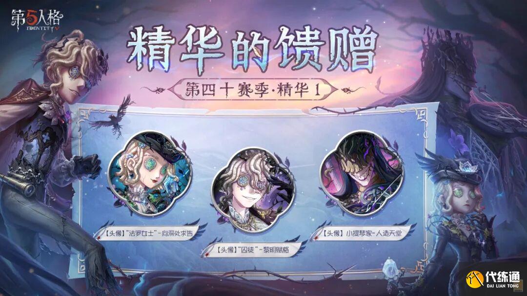 ●【赛季精华】:本周第四十赛季·精华1正式开放,全新时装更新,包括“囚徒”稀世时装-黎明赋格、“法罗女士”奇珍时装-向深处求告和小提琴家奇珍时装-人造天堂。在抽取精华次数达到80/130次时,可在【头像】“法罗女士”-向深处求告 /【头像】小提琴家-人造天堂中任选其一获得;当抽取次数达到180次时,则可获得【头像】“囚徒”-黎明赋格;