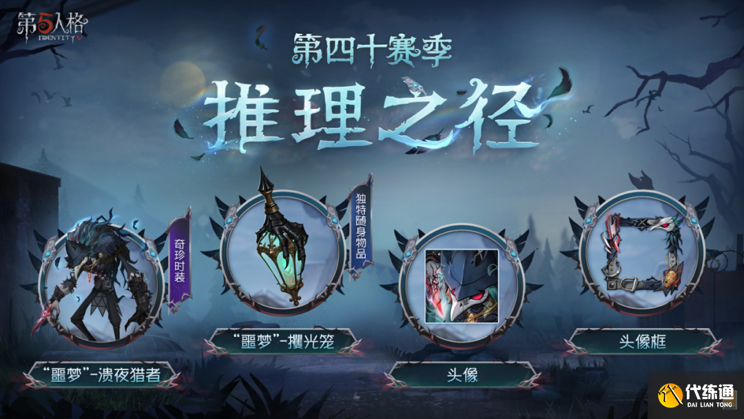 ●【推理之径】:四十赛季开启后,推理之径等级将会重置为0,同时推理之径上的奖励也会更替为第四十赛季全新奖励。本次特殊格奖励为【头像】“噩梦”-溃夜猎者、【头像框】“噩梦”-溃夜猎者、【独特随身物品】“噩梦”-攫光笼和 【奇珍时装】“噩梦”-溃夜猎者。在推理之径达到600格的玩家,在本赛季结束后1个月内可获得本赛季推理之径奇珍时装的限时购买资格(届时时装售价1388回声);