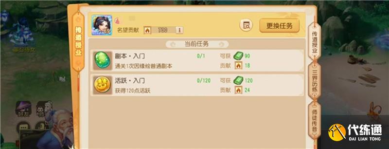 选择好师傅后,玩家可以进入专门为跨服拜师设计的场景五叶堂进行结对拜师。拜师成功后,师父可以为徒弟发布一系列教学任务,徒弟完成全部任务后可以获得相应的积分奖励,同时还能为宗门贡献名望值。