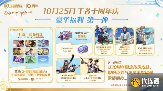 【免费送】参与活动即可免费兑换任一款:2-9周年限定皮肤与10周年限定史诗皮肤!(10周年限定史诗皮肤,将在活动结束后上架商城限时售卖)