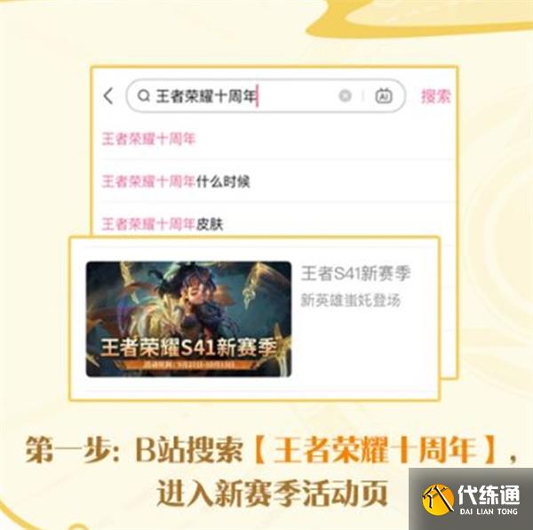 1、打开B站搜索【王者荣耀十周年】,进入新赛季活动页面。
