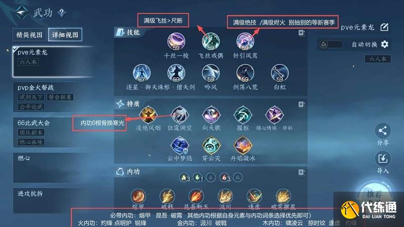必带内功:熔甲 昆吾 破霄 其他内功根据自身元素与内功词条选择优先即可)