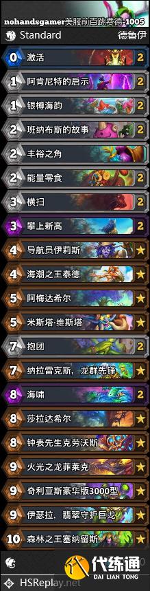 nohandsgamer美服前百跳费德,他说卡组参考了jambre的构筑,战绩是20胜5负,他的弹幕们用这套怎么都不能赢,他怎么就不会输。