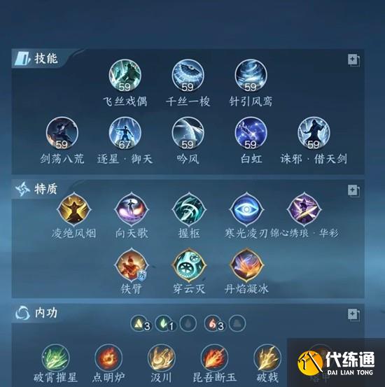 内功特质。照抄就行没有变化,神特换剑心+狂霆也试了,还是不如神特。更正一下,凤城特质带华彩更高,技能染什么颜色都行。