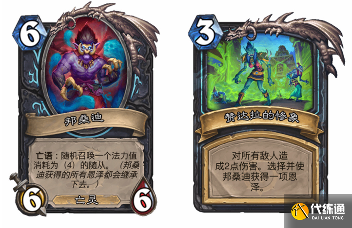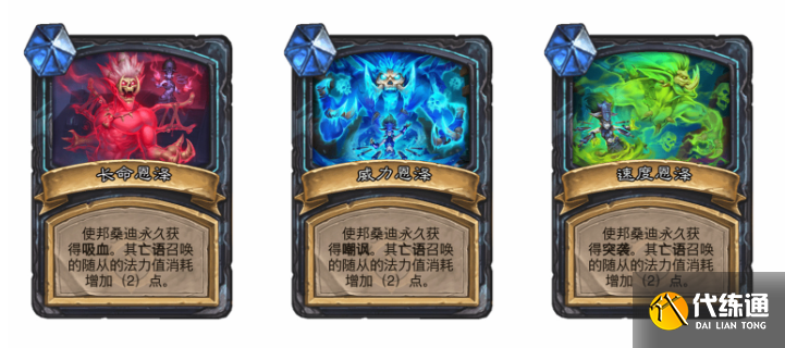 奇闻。战吼:抽取邦桑迪(如果他已经死亡则将其复活),选择并使其获得一项恩泽。