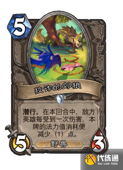 潜行。在本回合中,敌方英雄每受到一次伤害,本牌的法力值消耗便减少(1)点。