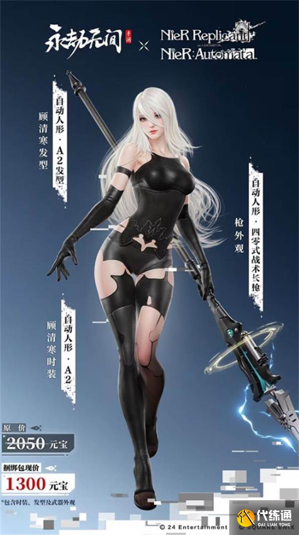 【顾清寒·A2捆绑包】:包含极品时装【自动人形·A2】及专属武器皮肤,折扣价1300元宝(原价2050元宝)。