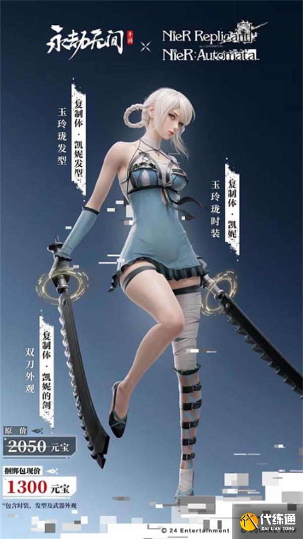 【玉玲珑·凯妮捆绑包】:附带极品时装【复制体·凯妮】与双刀皮肤,折扣价同为1300元宝。
