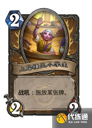 战吼:获取一张2/2的小学生。发现一个来自过去的法力值消耗大于或等于(7)点的法术,教会小学生。