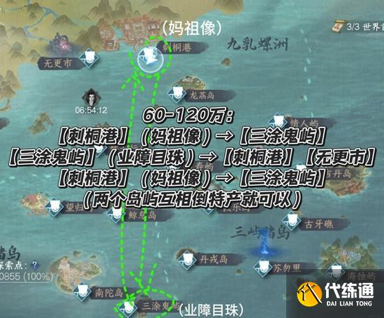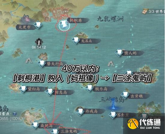 试了一下,这周【刺桐港】妈祖像去【三涂鬼屿】的价格比【苏勿里】高一点点,附加条件仍然看p4各岛屿产品类型,就近购买