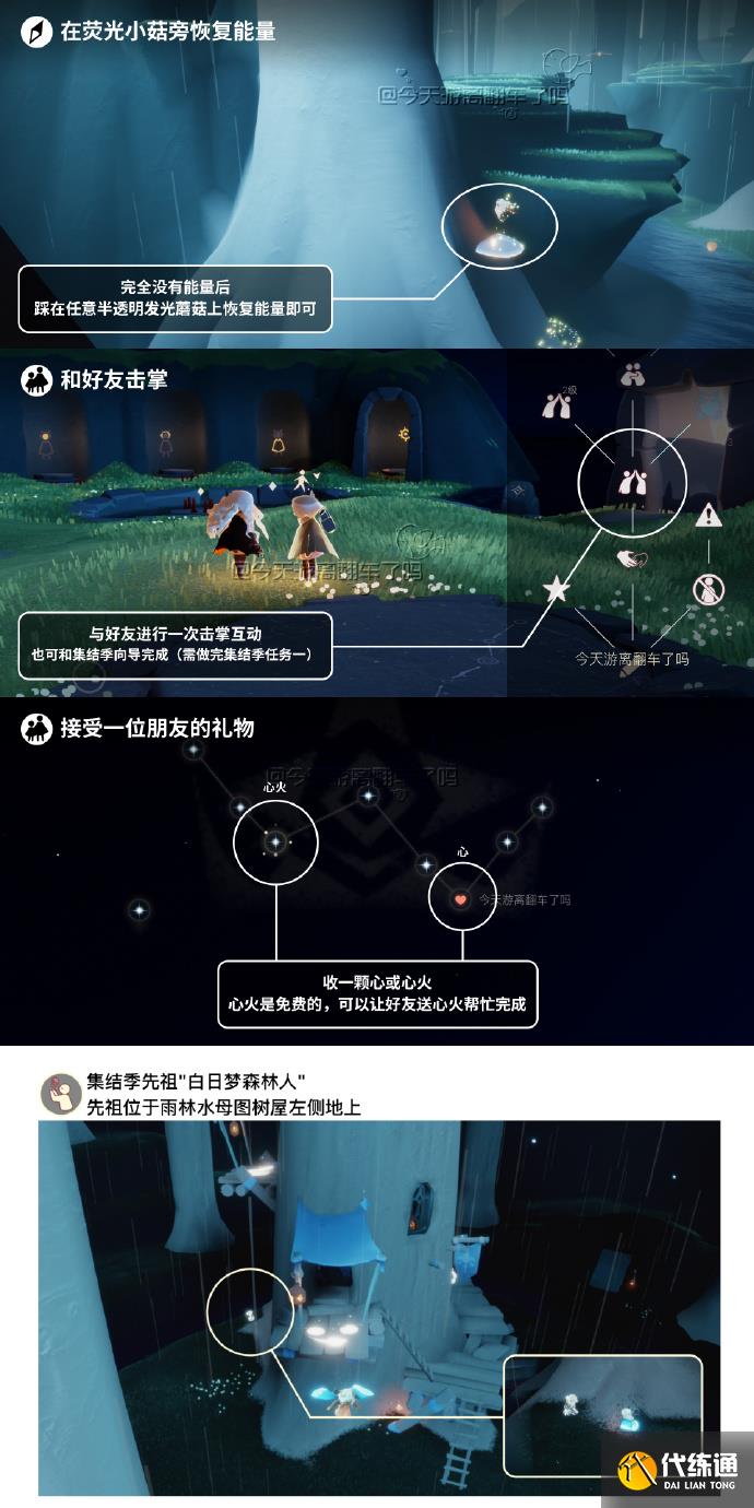 《光遇》游戏中每天的每日任务及大蜡烛的位置都不相同,玩家完成每日任务及收集大蜡烛都可以得到丰厚的兑换奖励,奖励可以用于兑换各种动作及道具,不过很多小伙伴不知道每日任务怎么做,又懒得自己去找大蜡烛的位置,我们汇总了每日任务的完成攻略以及蜡烛位置,一起来看看吧!