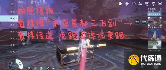 我保存了拍照自定义模板,点击“拍照-模板-搜索-永夜星都三飞剑-寻路”,就可以直接传送到那里了