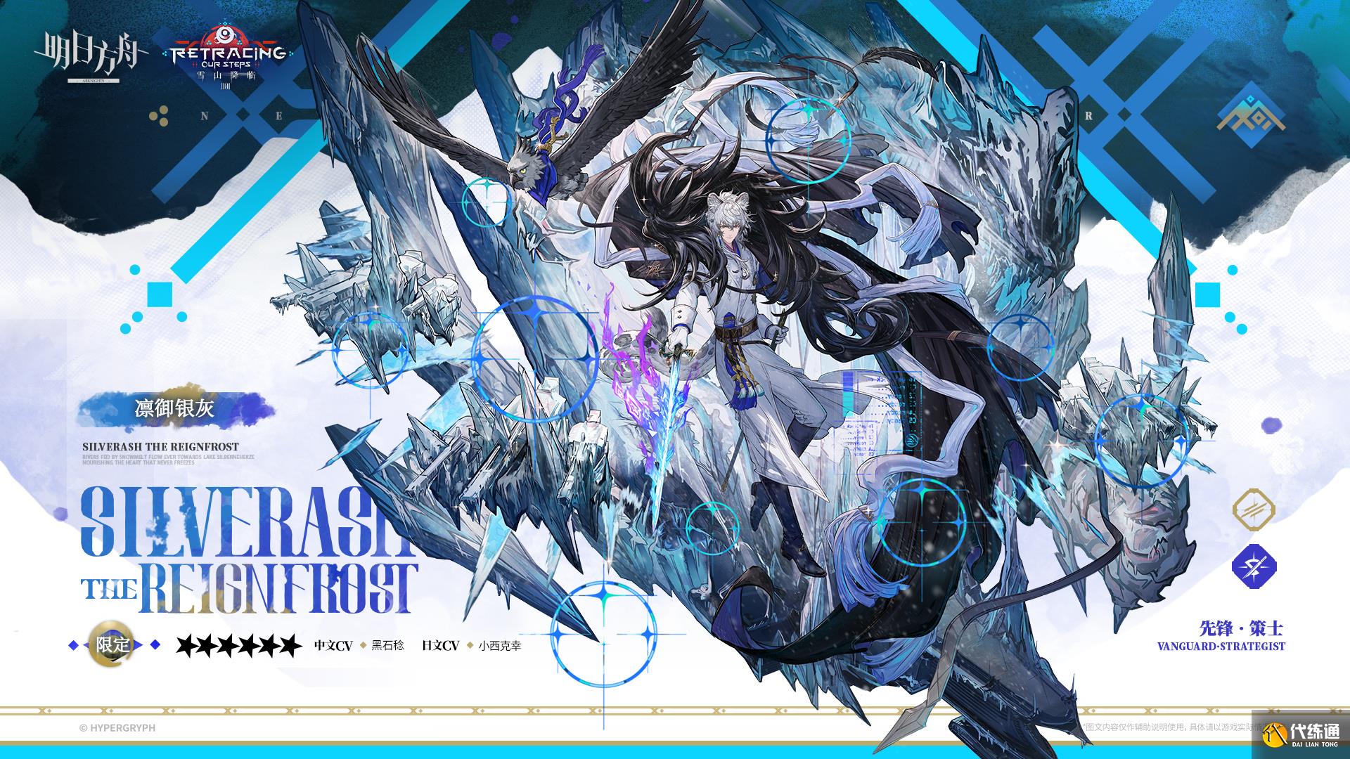 技能开启后,凛御银灰对前方数名敌人造成攻击力一定比例的物理伤害,使其数秒内寒冷且隐匿失效;待部署区距“风雪之眼”最近的1名干员费用降低(优先选择右侧近卫/术师/狙击干员);使“风雪之眼”左侧所有干员部署时以自身攻击力施放一次本技能的范围效果(最多叠加数次)