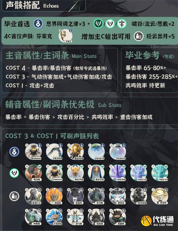 该组合兼顾输出与共鸣效率,适合大多数阵容。