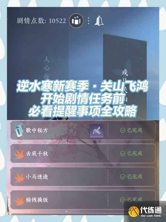 逆水寒新赛季剧情任务 关山飞鸿必看注意事项攻略