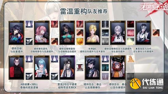 目前关于雷温的玩法与配队非常多,但暗域也一般不用雷温来打,短线有更好的队伍,雷温比较擅长长线输出