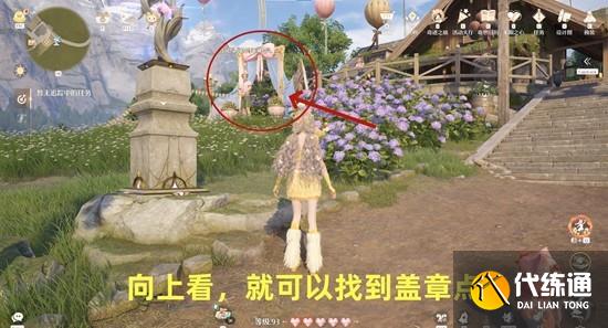 传送到绿野活动支援中心 锚点,抬头向上看,就可以看到盖章点;