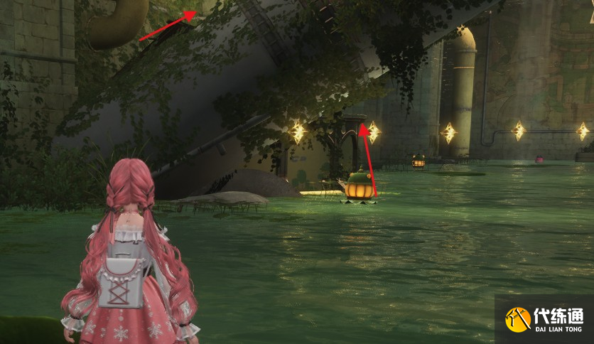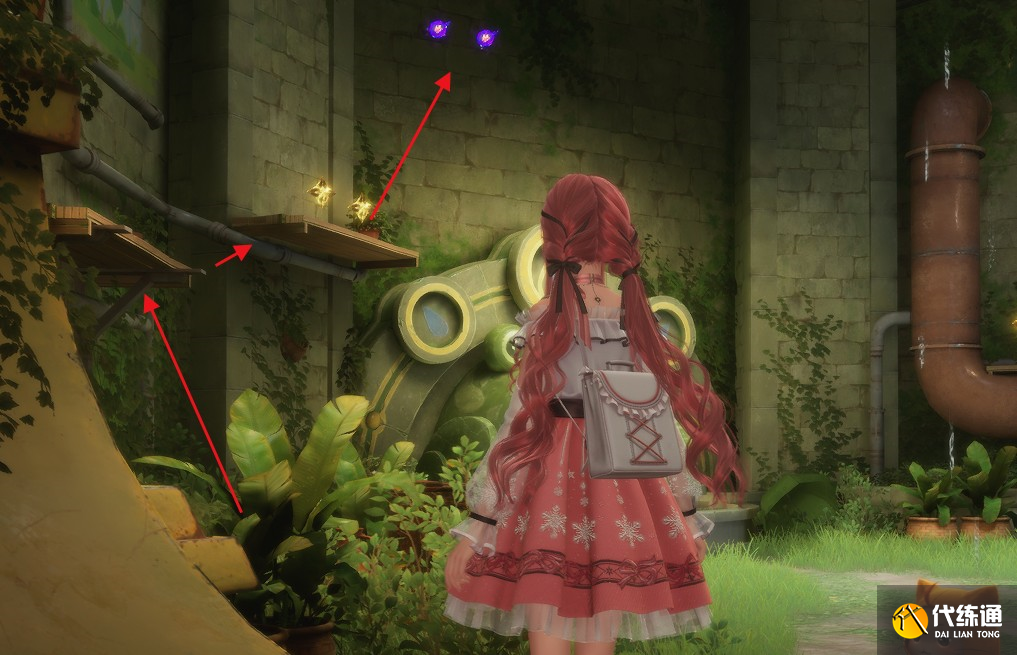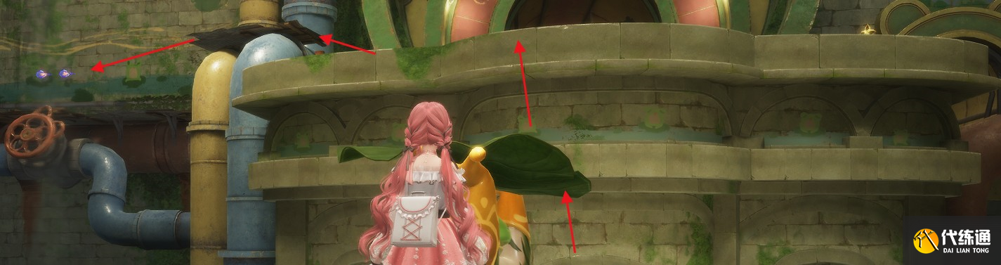 拿完露珠之后,从洞口出来,跳到左侧台阶顺着往前走获取两颗露珠。