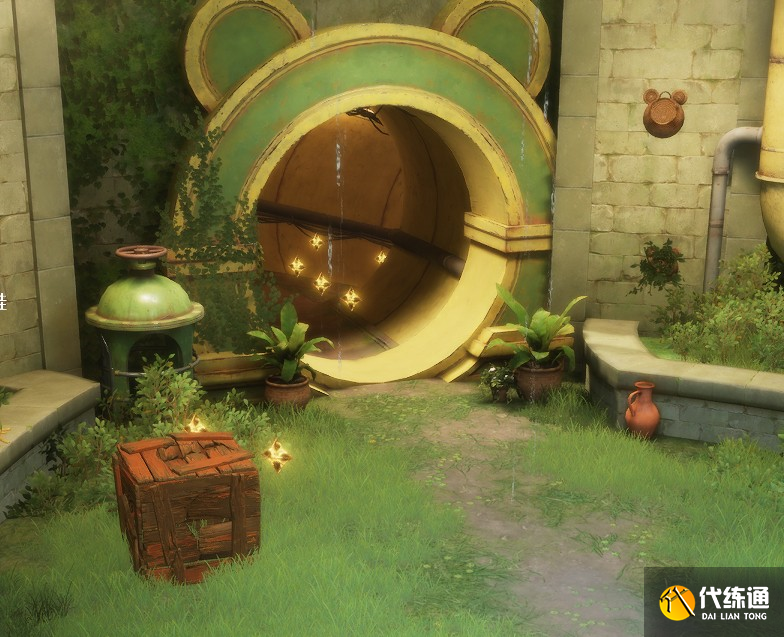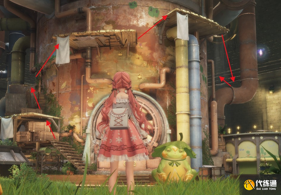 进入洞口后,如图所示,跳到水管后获取奇想星。