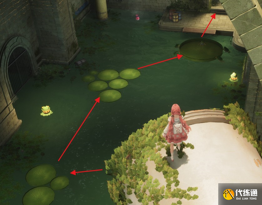 修理完两个故障电箱之后,会救出了中心的帽蛙,然后进行对话,帽蛙会举起荷叶帽让我们能顺利跳上台阶。