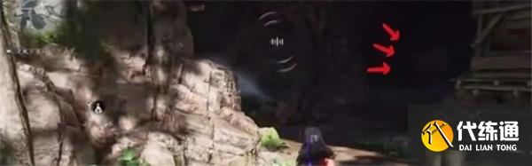 4、传送到栖鸟岩界碑,随后跳下悬崖,在下方山洞内找到陈木。