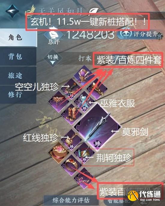 下身推荐:橙戒+紫装/百炼两件套+红线独珍/荆轲独珍/百草聆风囊/孤风云砥坠 四选二